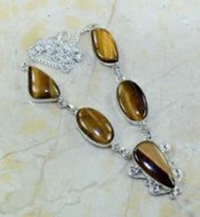 שרשרת משובצת ג'ספר חום פסים כסף 925