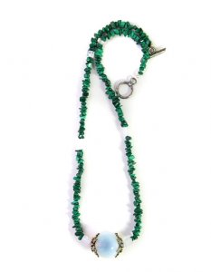 שרשרת אגת ירוק צ'יפס אבן מרכזית אופלית סוגר מוכסף