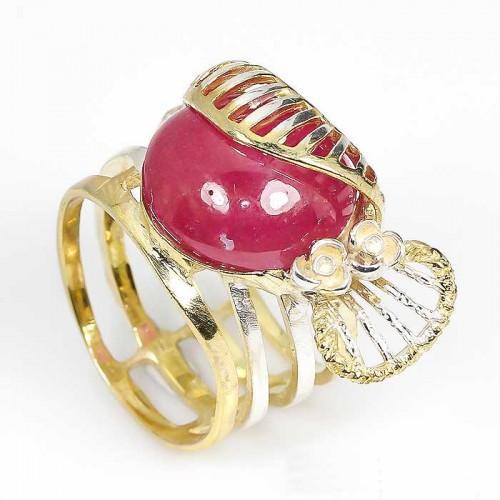 טבעת בשיבוץ רובי עבודת יד כסף בציפוי זהב