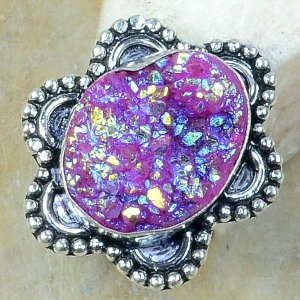 טבעת משובצת אגט טיטניום ורוד סגול כסף 925 מידה: 9.5