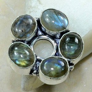 טבעת משובצת 5 אבני לברדורייט כסף 925 מידה: 7.5
