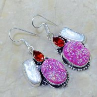 עגילים בשיבוץ טטיטניום ורוד גרנט ואם הפנינה כסף 925