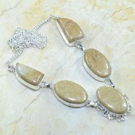 שרשרת משובצת ג'ספר חום שמנת כסף 925